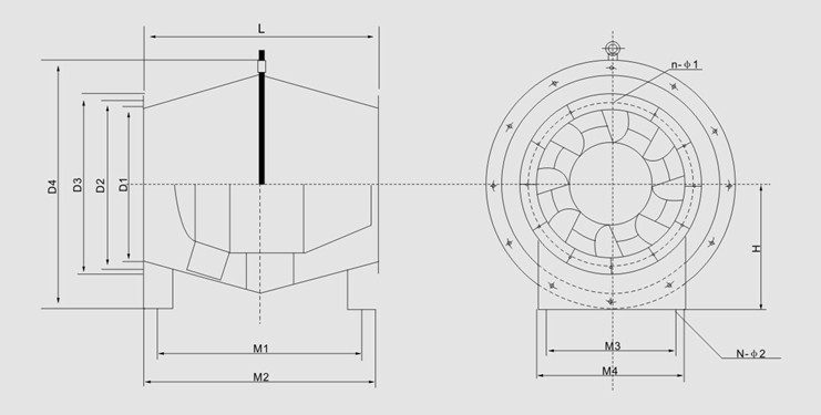 GXF型斜流式風(fēng)機(jī)是一種新型低噪高效節(jié)能型斜流式通風(fēng)機(jī),斜流式風(fēng)機(jī)流量大于離心風(fēng)機(jī),全壓高于軸流風(fēng)機(jī),體積小于離心風(fēng)機(jī),該風(fēng)機(jī)通過模擬機(jī)的試驗(yàn)研究,采用獨(dú)特的葉型和葉輪設(shè)計(jì)取得較高的全壓和流量參數(shù),并提高了風(fēng)機(jī)的全壓效率。SJG、FSJG型斜流式風(fēng)機(jī)是SWF型風(fēng)機(jī)的派生型產(chǎn)品,采用鼓型風(fēng)筒,調(diào)整氣流方向從而達(dá)到回收靜壓提高風(fēng)壓和效率的效果。故兼離心式風(fēng)機(jī)壓力系數(shù)較高和軸流風(fēng)機(jī)流量系數(shù)較高的特點(diǎn),具有噪聲低、耗電省、結(jié)構(gòu)緊湊等優(yōu)點(diǎn)。廣泛應(yīng)用于工礦企業(yè)賓館、飯店、博物館、體育館等的送排風(fēng)系統(tǒng)。